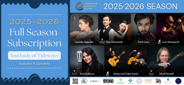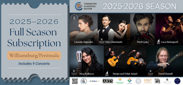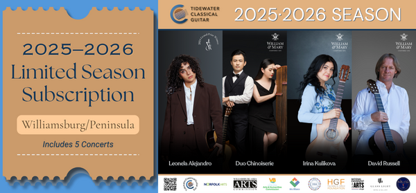 This season ticket subscription includes all concerts presented in Norfolk and Virginia Beach in addition to the two concerts that are only taking place in Williamsburg (Duo Chinoiserie on 10/19/25 and TCG Holiday Showcase on 12/4/25). This package includes a total of eight concerts all after 9/19/25.